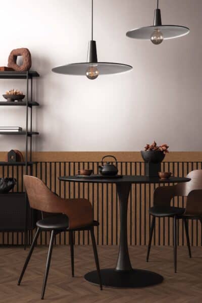 Metall – industriell und markant: Oxidiertes Kupfer, gebürsteter Stahl oder rostige Flächen setzen starke Akzente. Sie passen hervorragend zu Industrial-Looks und modernen Loft-Interieurs, sollten aber sparsam eingesetzt werden, um nicht kühl zu wirken.